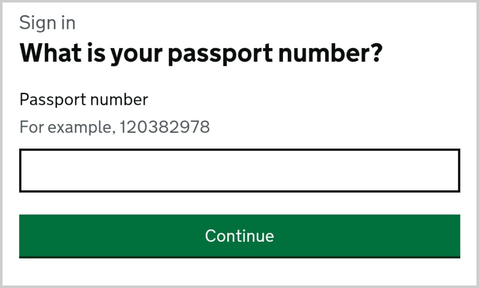 In the next step, please enter the number of that document (e.g., passport) and click the [Continue] button. See the image below.