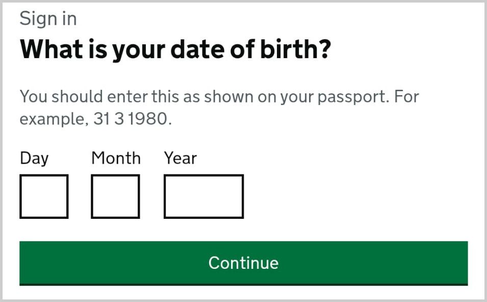 Next, please provide the date of birth that appears on the document and click the [Continue] button. See the image below.